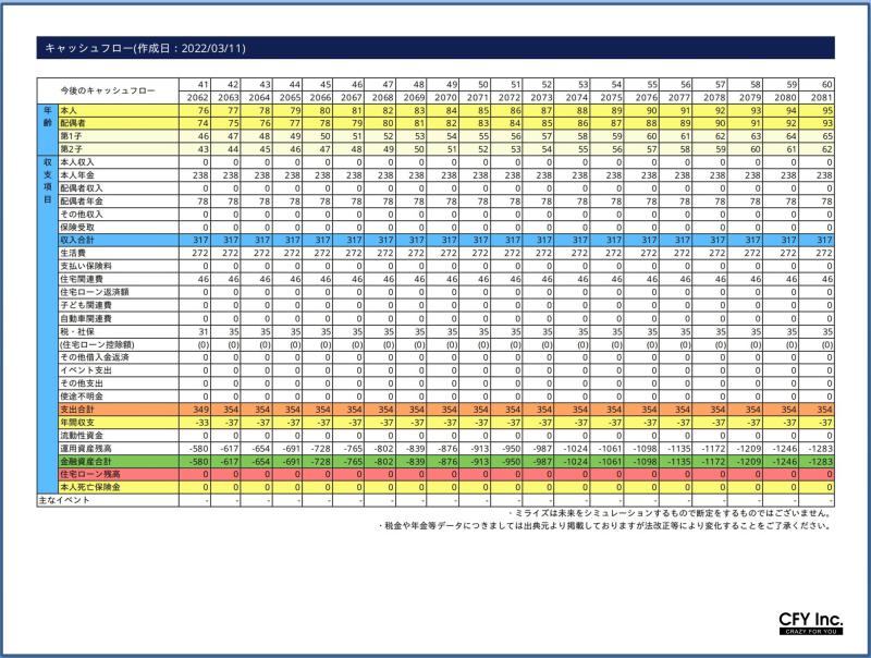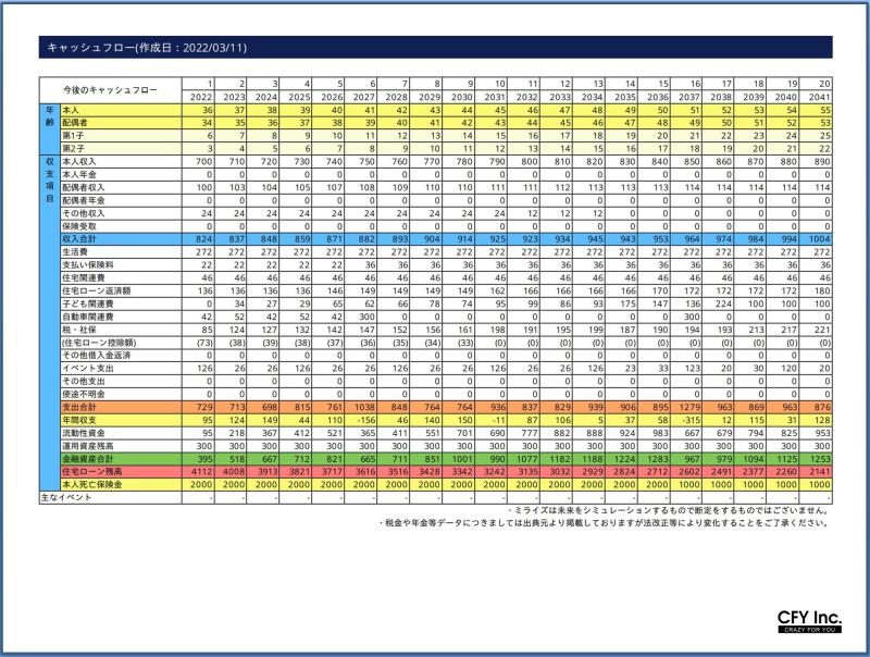 TOP>経営者>COOが主催する『お金の勉強会』COOが主催する『お金の勉強会』#経営者2022-05-06CFYのCOOはAFP資格を取得しています。ファイナンシャル・プランニングの知識を活かして、社内向け「お金の勉強会」を開催することにしたそうです。日本は欧米と比べて「お金の知識」が低いということを耳にしますが、学校教育でお金について学ぶ機会がないことが要因のひとつだと言われています。確かに、お金については自分の意思で学ぶ機会を作るしかないかもしれません。人生100年時代。豊かな人生を送るためには、いつまでに、いくら貯めるかなど、数字に置き換えて「見える化」することが重要だといいます。その「見える化」をするには『ライフプラン』を作成することが良いそうです。ということで「お金の勉強会」第1回目のお題はライフプランの作成。勉強会の資料もとてもよく出来てるので前頁をアップしておきます。皆さまの参考になれば幸いです。HIRONORI KAJIKAWA この記事をSNSで共有する
