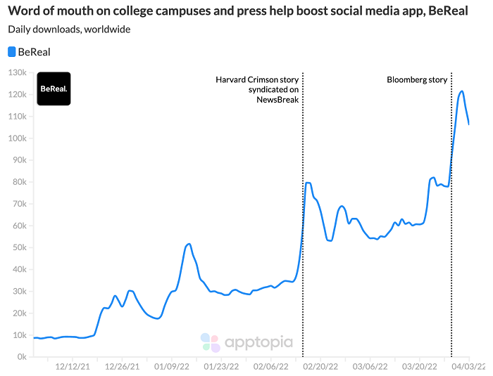 現在、フランス発祥の新感覚SNS『BeReal(ビーリアル)』が海外のZ世代を中心に流行しています。この『BeReal』が注目を集めている理由としては、これまでのSNSにはなかった新しいコンセプトであることが挙げられます。それは、アプリの名前にも込められている『リアルな自分を見せる』というコンセプトです。ニュースサイト「Social Media Today」によると『BeReal』のダウンロード数は年初から315%上昇し、2022年第1四半期のダウンロード数が米国、英国、フランスにおいて、Instagram、Snapchat、Pinterestに次いで4位にランクインしています。(累計ダウンロード数は741万回)