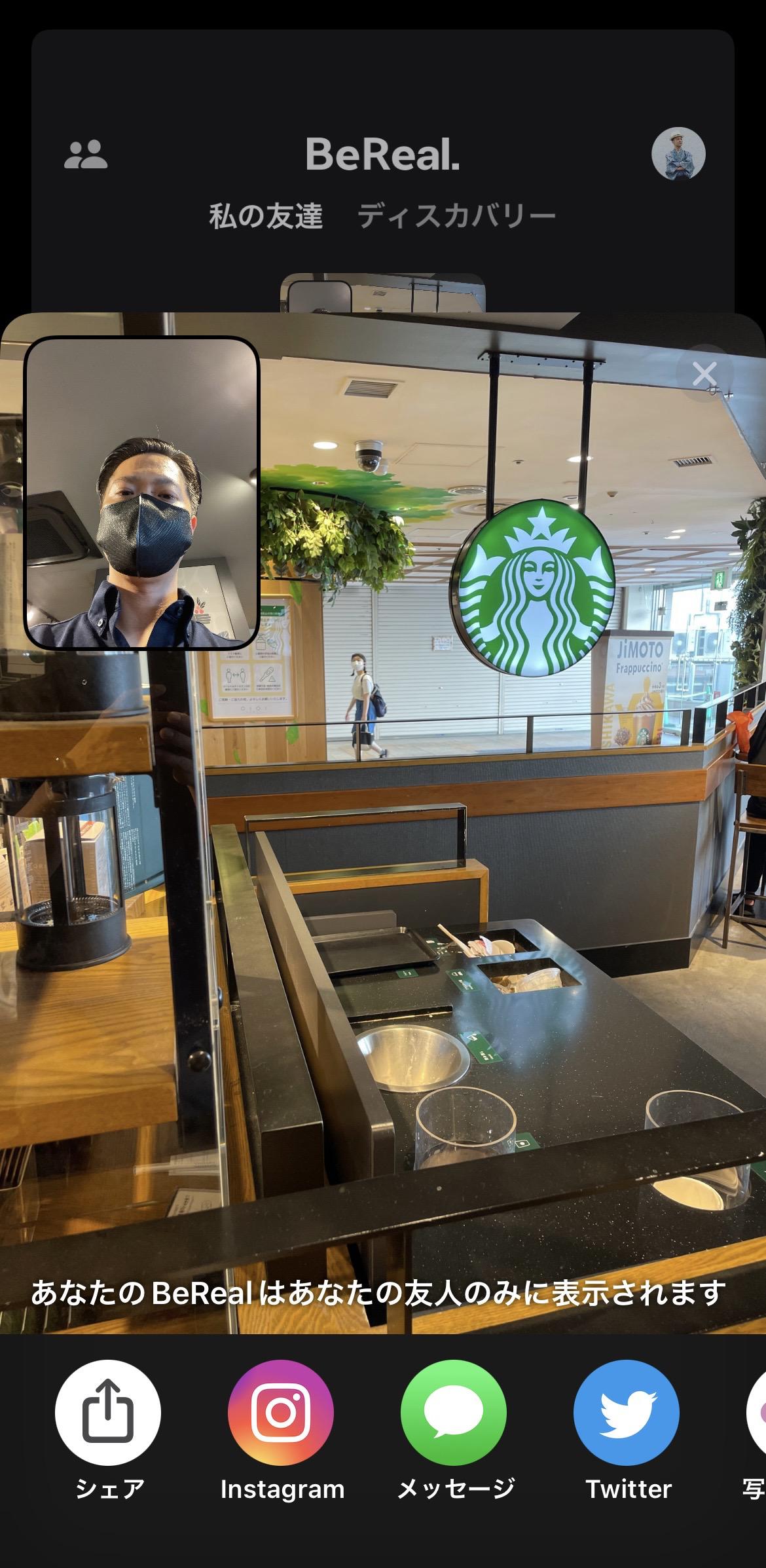 無事に投稿が完了するとホッとします。投稿が完了すると、他のアプリに画像シェアできますが「ありのままの姿」の写真だということをお忘れなく。