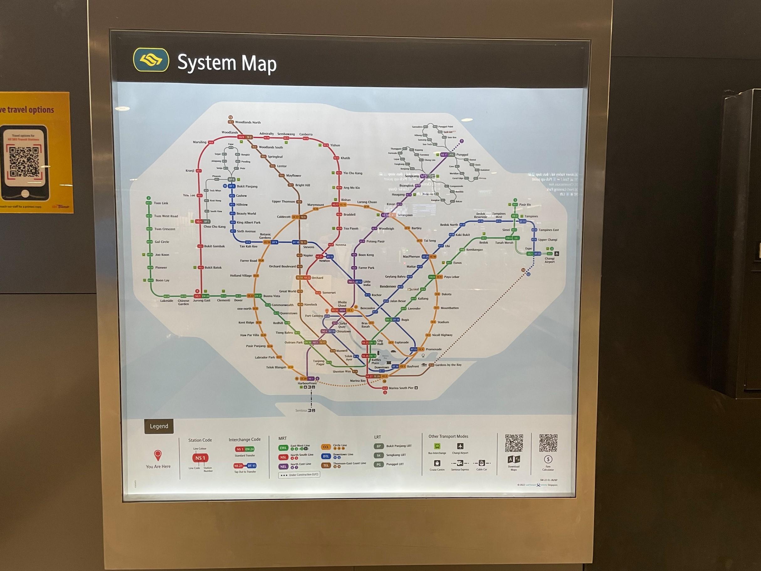 次は、MRT(電車・地下鉄)に乗って交通分野のスマートネイションを実体験してみることに。シンガポールではメジャーな交通手段であるMRT(電車・地下鉄)は料金も安いため旅費を抑えて旅行を楽しみたい時はマスト手段です。路線は6路線あり、分かりやすくそれぞれ色分けされています。