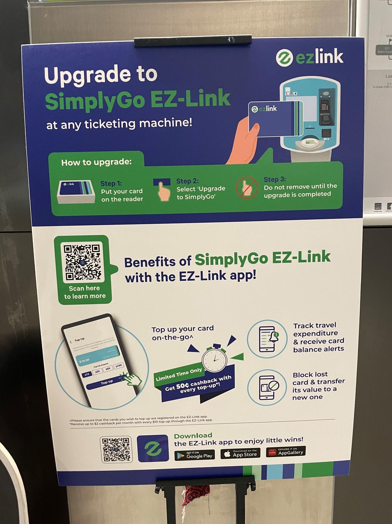 スタンダートチケットはバスが利用不可。シンガポール・ツーリスト・パスはデポジットが高く返金不可(S$10)。EZ-Linkカードはデポジットが安く(S$5)、バスも利用可ということで、私はEZ-Linkカードを選びました。