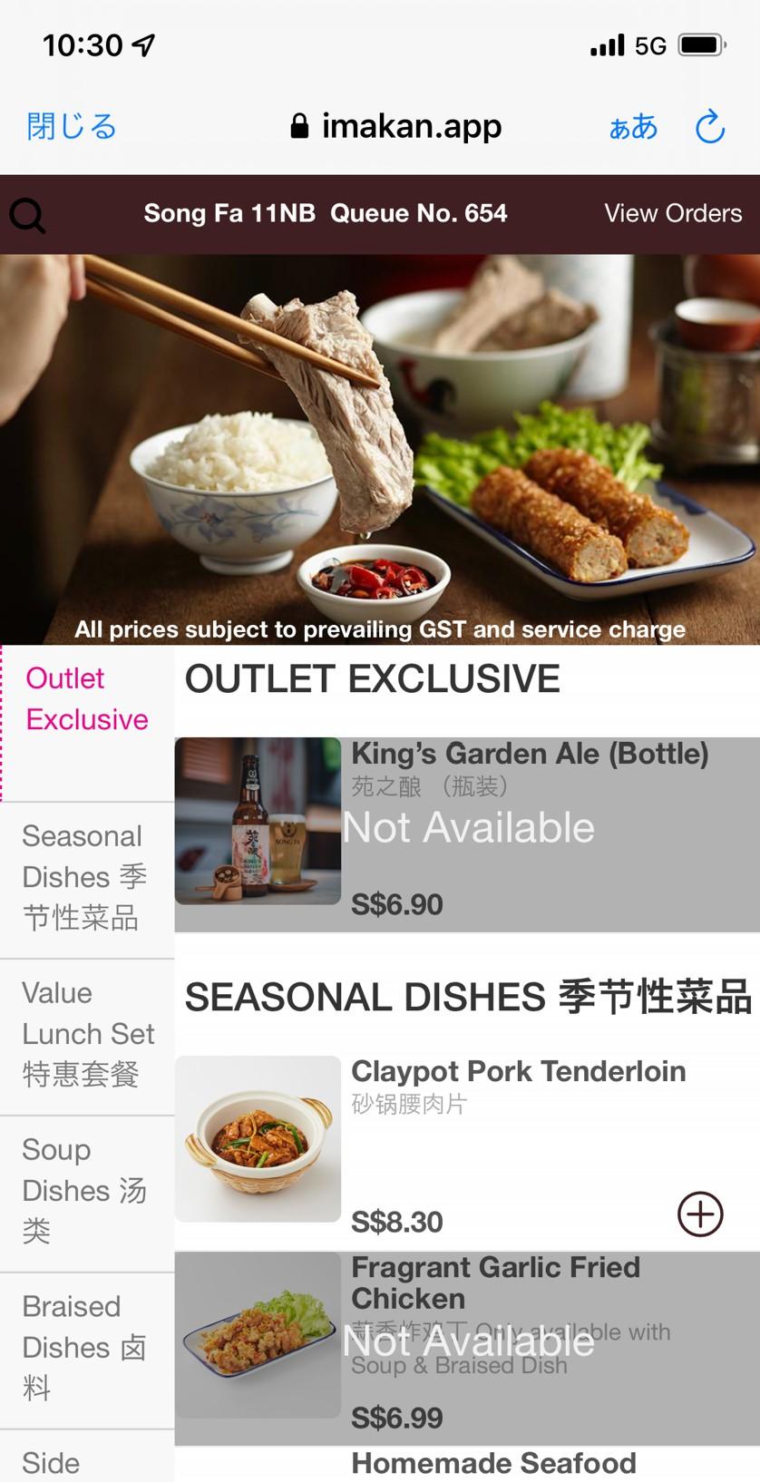 並んでいると整理券が渡されます。その整理券に記載されてるQRコードからアプリへアクセスして注文します。めちゃくちゃ悩むんですが、メニューが写真付きなので、どんな料理か分からないということはないですね。ナイスUI!(ぴったり10:30に入店)