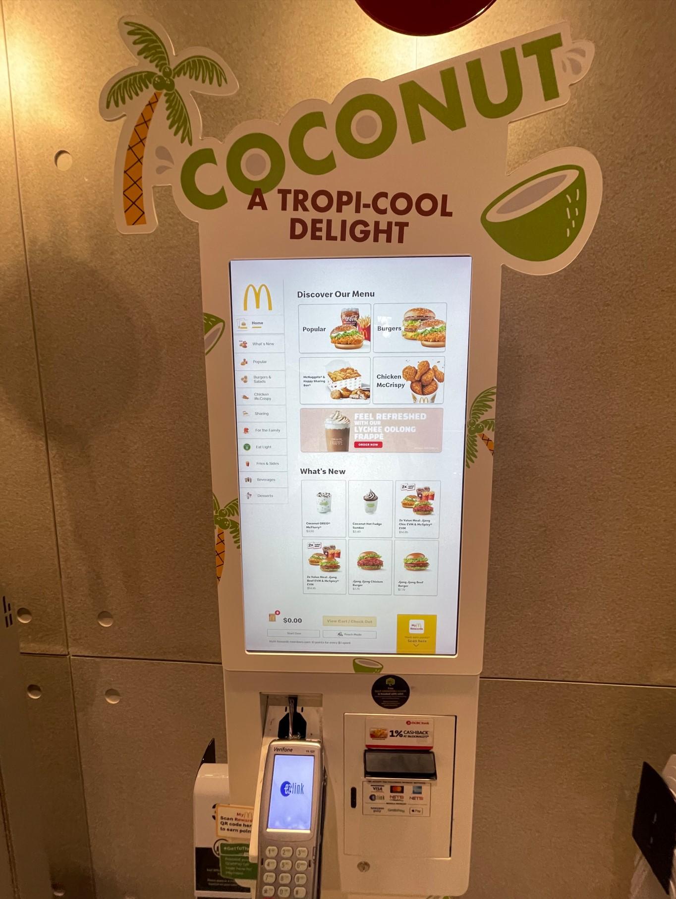 シンガポールのマクドナルドは、ほとんどの店舗でタッチパネル注文が採用されています。もちろんアプリ注文も普及しているので、使い分ける感じなのでしょう。日本でもタッチパネル注文は徐々に採用されつつありますが、意外とまだ少ないですよね。