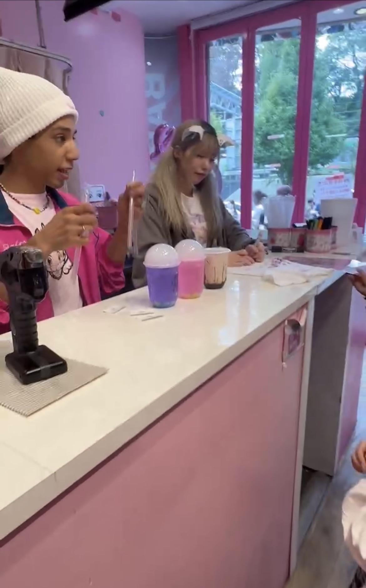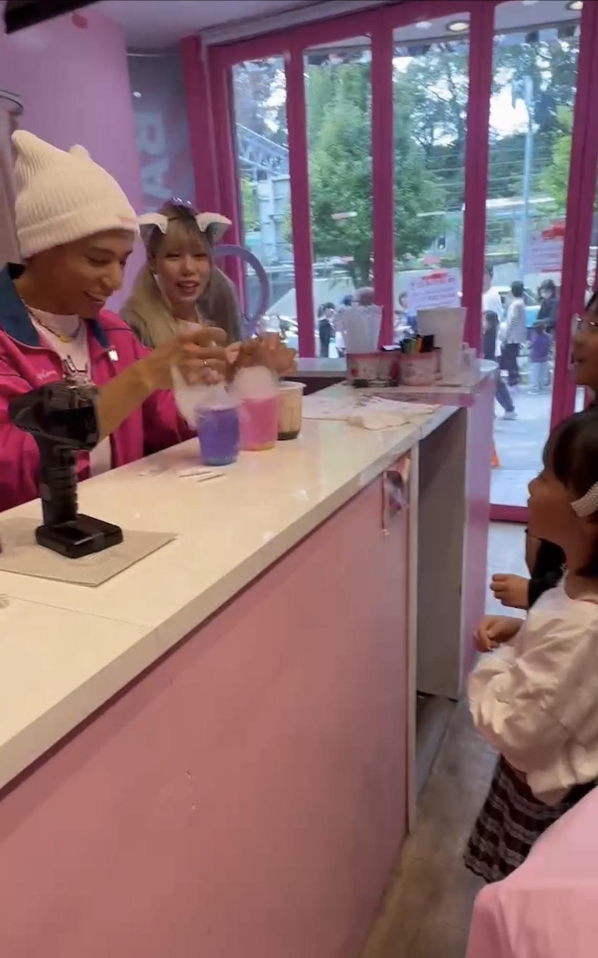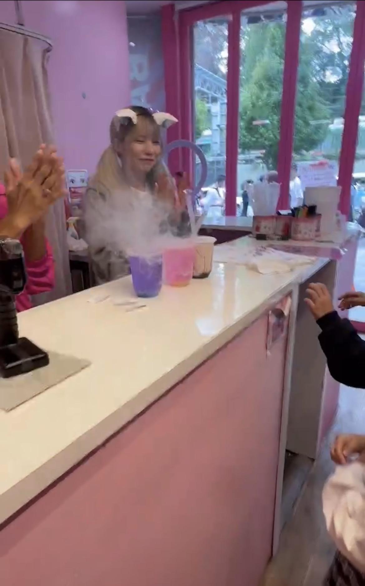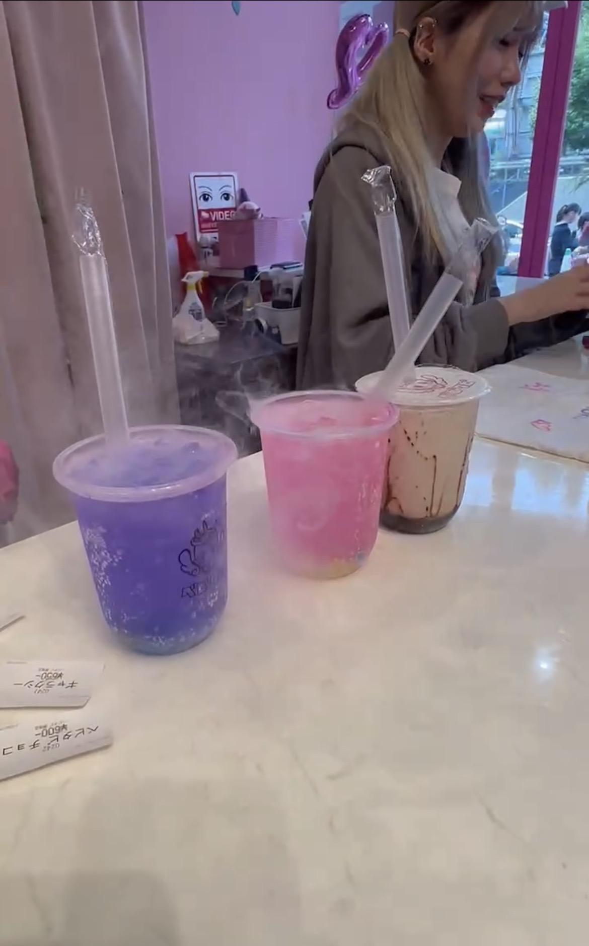 これがその店内。TikTokクリエイターさんがタピオカの上にまるでSphereのような球形を作っています。