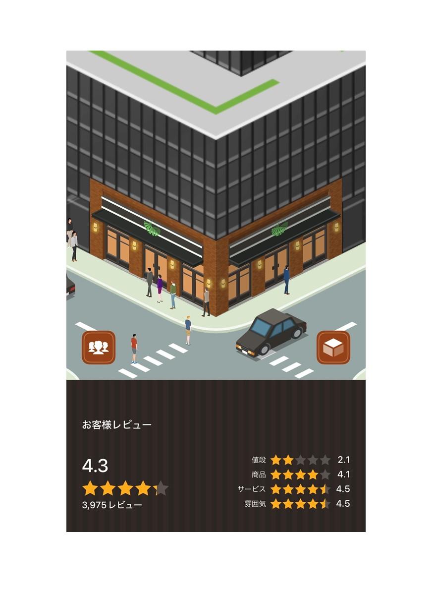 ゲームを進めていくと1週間ごとに「週間売上高」と「週間純利益」が自動集計され自分が経営した店舗がどんな収益を挙げたのかを検証することが出来ます。もしも、前週と比較して「週間売上高」あるいは「週間純利益」が下がってしまった場合は、店舗に何かしらの問題が発生している可能性があるので、店舗の状況を確認してすぐに改善しなければ更に業績は下がります。また、競合他社のサービスや顧客の満足度によって売上が左右されるので、業績を守るには定期的に「競合他社の視察」や「お客様レビューの確認」を行って改善することも重要となります。逆に、前週と比較して「週間売上高」あるいは「週間純利益」が上がっている場合は、戦略が正しいのでその店舗への新たな投資は控えても良いという判断が出来ます。このゲームは、この「週間売上高」と「週間純利益」の集計システムが非常に良く出来ており、自分の経営判断がリアルな数字として表れるので、経営判断の目線をカジュアルに学べるという点から人気が高まったのではないかと思います。