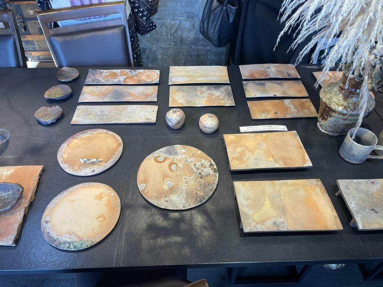 大西さんの作品がこちら。これは染料を使わずに土を焼いた色だけで作る「白丹波」。思わず一目惚れで大皿を購入してしまいました